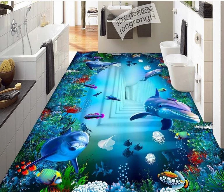 Beibehang Laut Dunia Kamar Mandi Seni 3d 3d Lukisan Lantai Lukisan Ruang Tamu Kamar Tidur Kamar Mandi 3d Lantai Pvc Anti Slip Lantai 3d Flooring 3d 3d3d Flooring Pvc Aliexpress